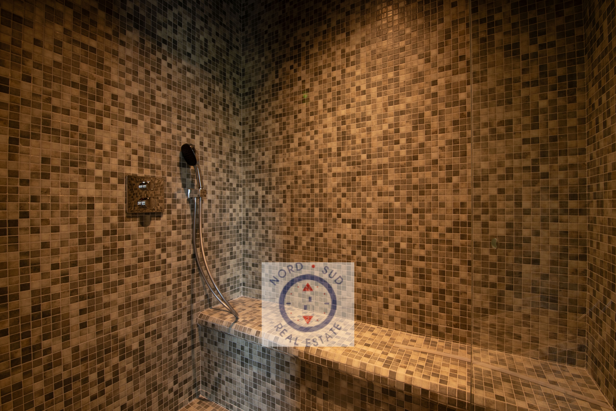 En rez-de-jardin, l’espace nuit se compose de trois chambres disposant de leur salle d’eau privative dont une avec hammam, pensées pour le calme et la détente. Un wc indépendant ainsi qu’une buanderie viennent compléter ce niveau.