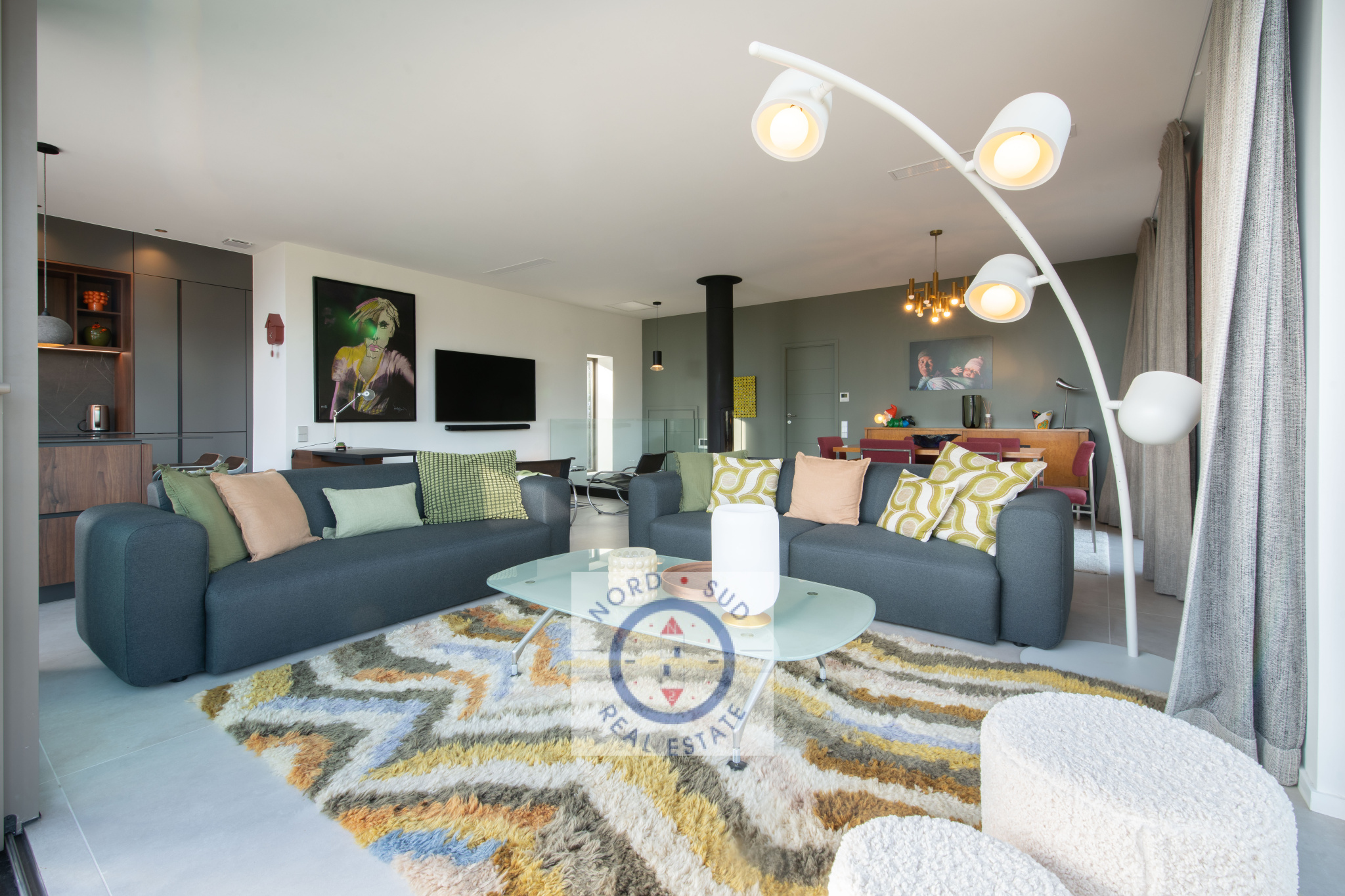 De larges ouvertures prolongent les espaces de vie vers les terrasses, permettant de profiter pleinement des extérieurs.
