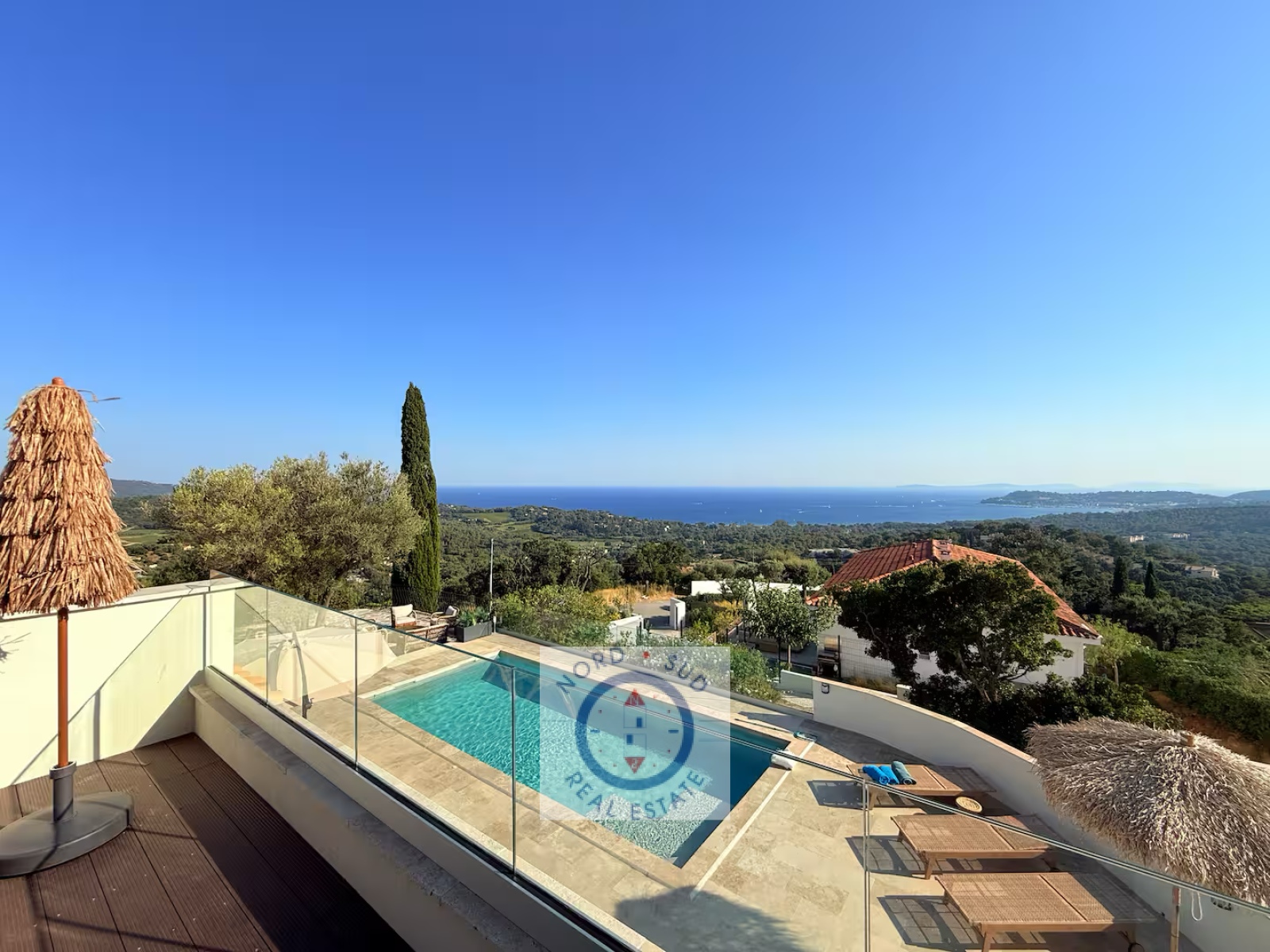Perchée sur les hauteurs paisibles de La Croix-Valmer, cette villa vous invite à vivre une parenthèse enchantée, bercée par une vue panoramique sur la mer et les collines environnantes.