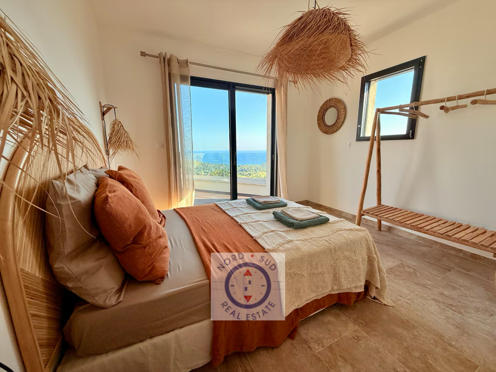 À l’étage, deux chambres avec salle d’eau privative se partagent une terrasse avec vue mer à l’infini. wc invité.